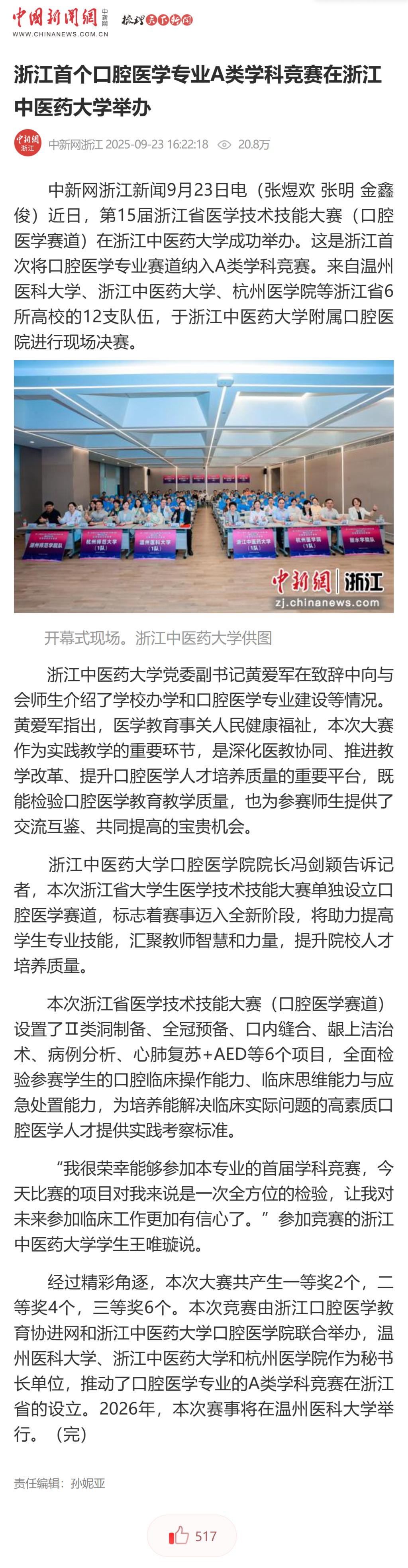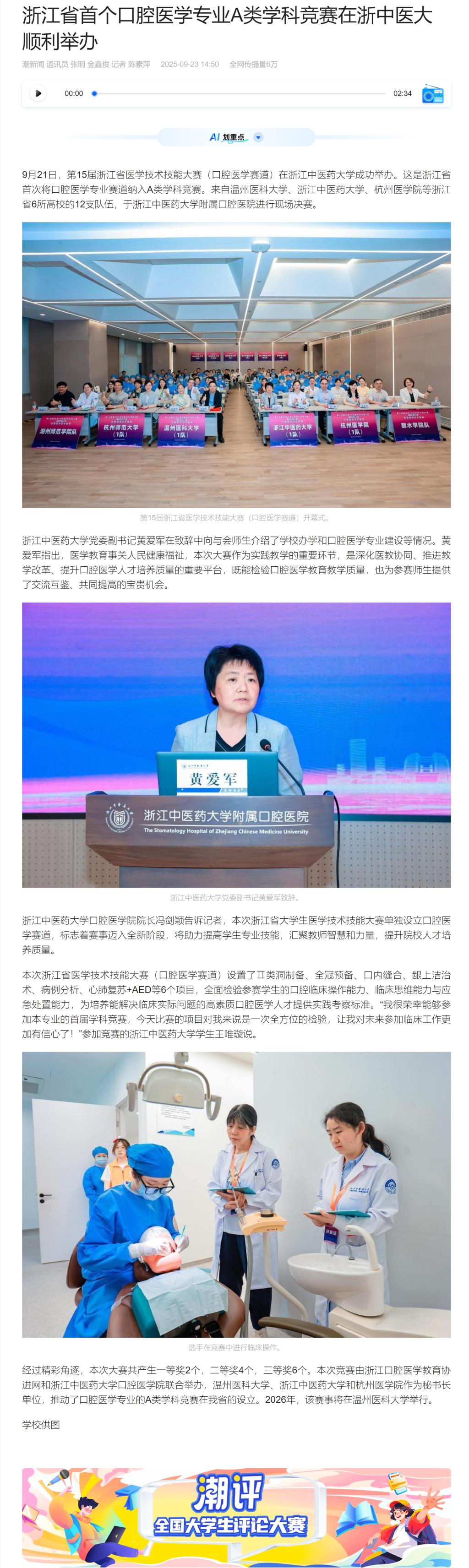 中新网、潮新闻:浙江省首个口腔医学专业A类学科竞赛在浙中医大顺利举办